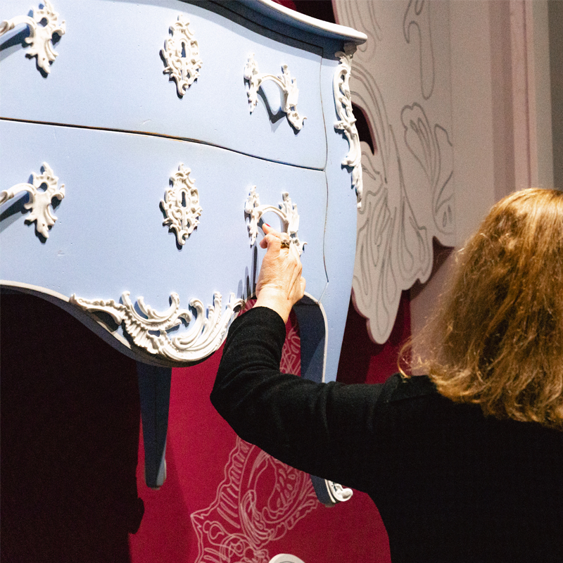 Pour célébrer 140 années d’audace créative, nous avons travaillé autour de notre commode iconique, en intégrant des ornements en porcelaine. Pour ce faire, les bronzes d’origine ont été scannés, afin de permettre la création de moules pour couler la porcelaine. Réalisés par les Ateliers Arquié à Limoges, chaque détail a fait l’objet d’une attention particulière.