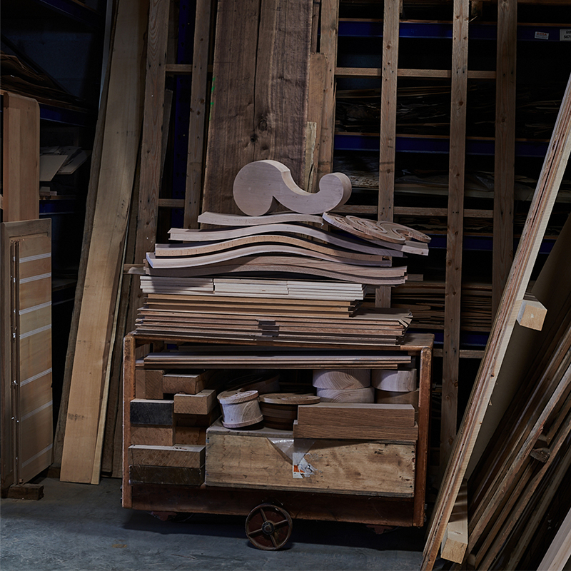 Chutes de bois, sciures et copeaux sont récupérés et alimentent ainsi le système de chauffage de la manufacture. Celle-ci est par ailleurs équipée de filtres à particules pour limiter la diffusion de polluants dans l’air. Les patines sont réalisées avec des fonds durs à l’eau et des peintures acryliques à base aqueuse.