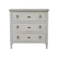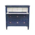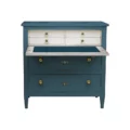 Three drawers with one forming a flap lined in leather, four small internal drawers.