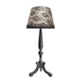 Baroque style, tripod torchere in lacquered beech. Shade H. 60 cm – D. high: 60 cm – D. low: 90 cm. Yardage for a plain-coloured fabric 140 cm wide: 3m. Lampshade fabric not included.