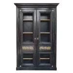 Two grilled or glazed doors decorated with Greek motifs decoration. Four shelves on support rail, with baseboard, moulded cornice. Interior depth: 38 cm.