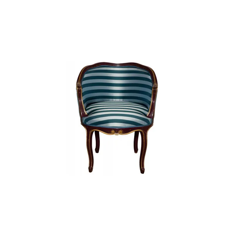 Wraparound shape with waisted back, carved feet and stretched seat padding. Yardage for a plain-coloured fabric 140 cm: 2.7 m.