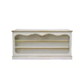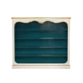 Moulded pediment with crest, four pine shelves on support rails, cannot be dismantled.
