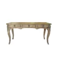 Three drawers, cabriole legs, leather top. Falls, bronze feet and lock plates in bronze.