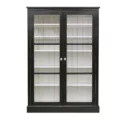 Opening with two glass doors, on plinth, five racks. Metric length for 140 cm wide plain fabric for the pair of curtains: 2 m.