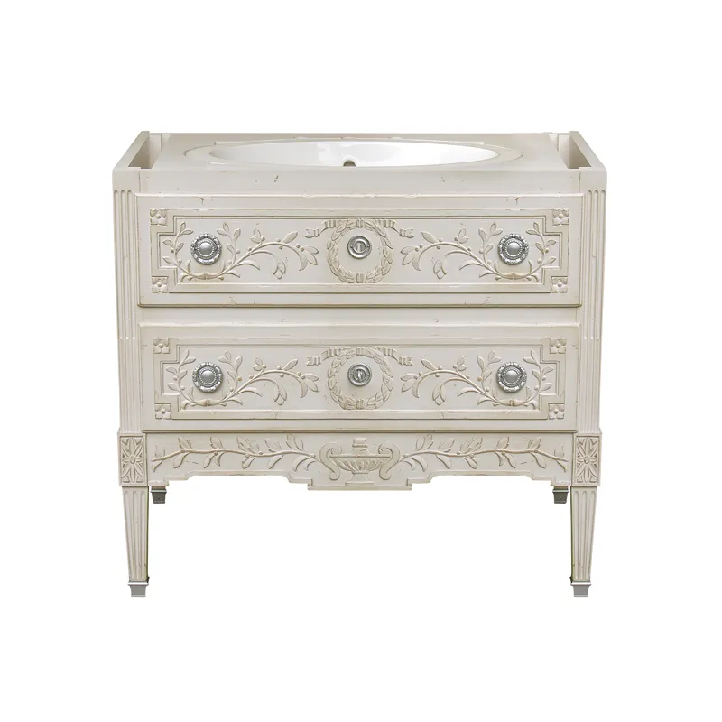 Special order. Vanity unit. Provençal style, lavishly sculpted, two drawers.