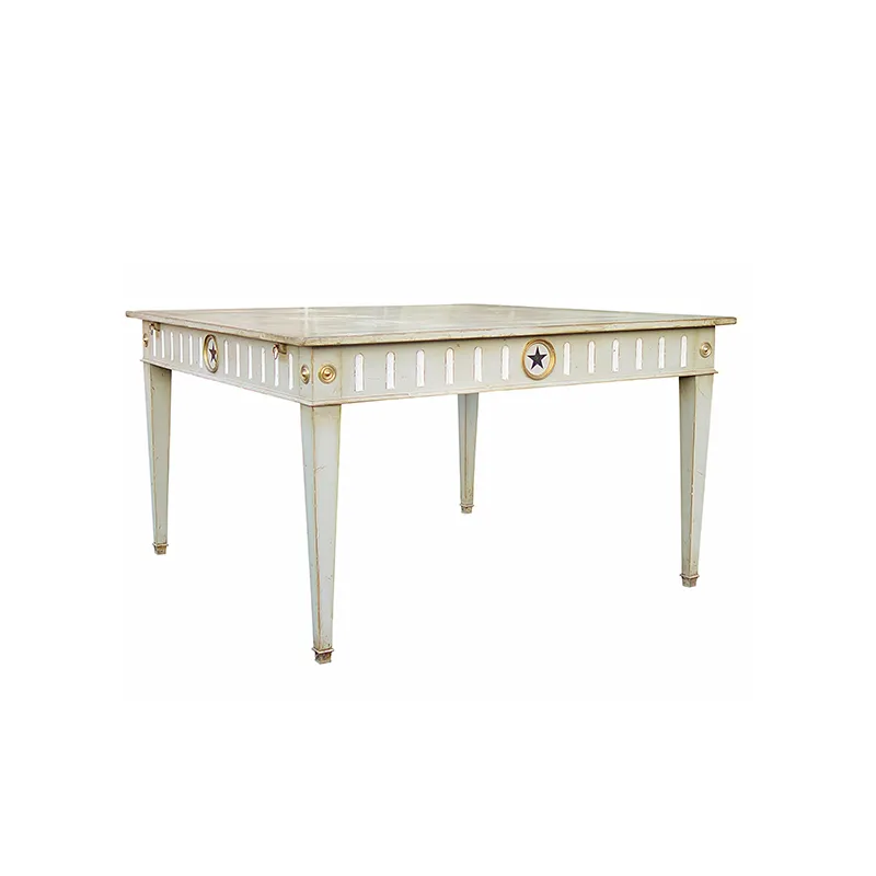 Ribbed crosspieces, decorative central medallion. Two 60 cm leaves on gliders.