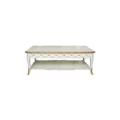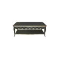 Apron with hobnailed latticework. One drawer at each end of the table, one lower shelf.