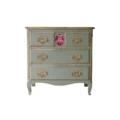 Four drawers, bronze handles, decorative painted monograms with personalized initials.