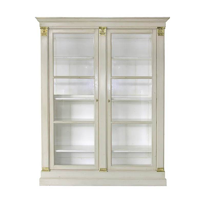 Deux portes vitrées, quatre rayons intérieurs sur crémaillères.