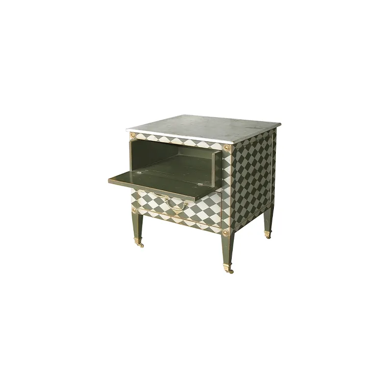 Deux tiroirs dont un formant abattant. Dessus en marbre en supplément.