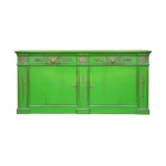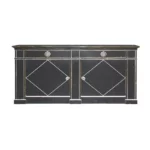 Corps du bas deux portes panneautées, palmettes Directoire en bronze, meuble sur plinthe, un rayon sur crémaillères.
