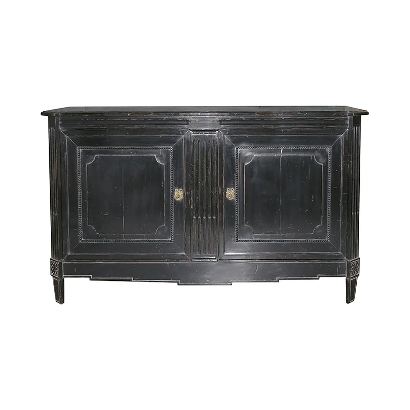 Deux portes, pilastre cannelé, pans coupés, un rayon sur crémaillères, dessus bois.