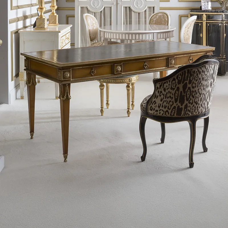 Pieds gainés, dessus cuir avec vignette, riche en ornements bronze.