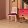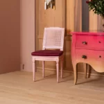 Chaise Louis XVI. Assise et dossier cannés à la main. Galette d’assise sur demande. Métrage pour un tissu uni en 140 cm de large : 1,20 m. Hauteur d’assise : 51 cm.