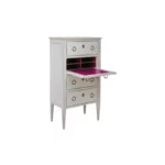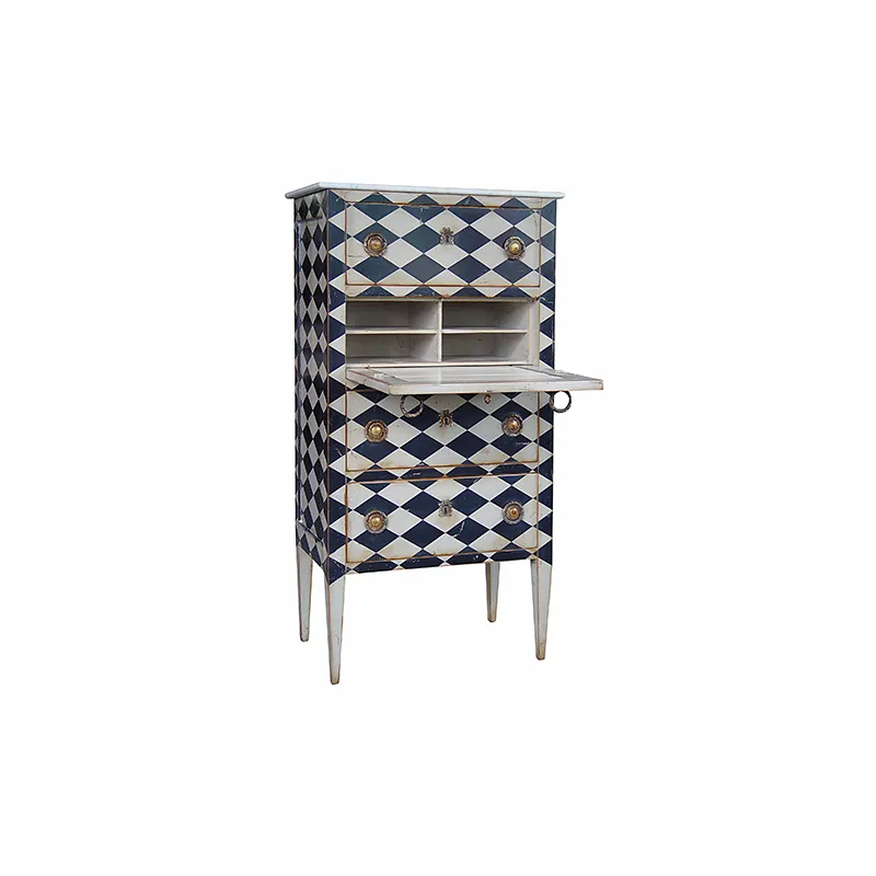 Quatre tiroirs dont un formant abattant gainé cuir, quatre casiers intérieurs.
