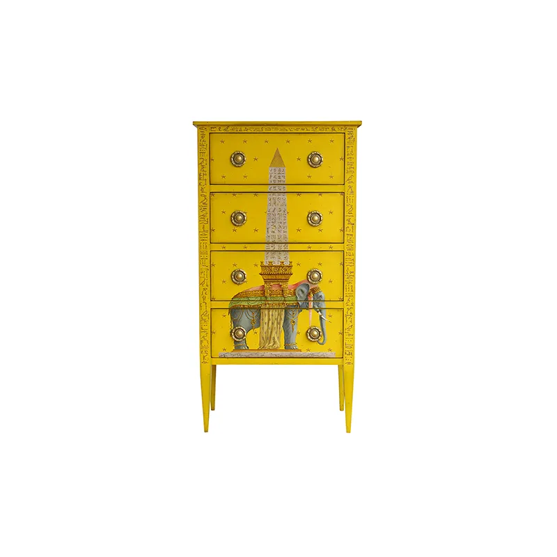 Quatre tiroirs, dessus bois ou marbre blanc, pieds gainés.