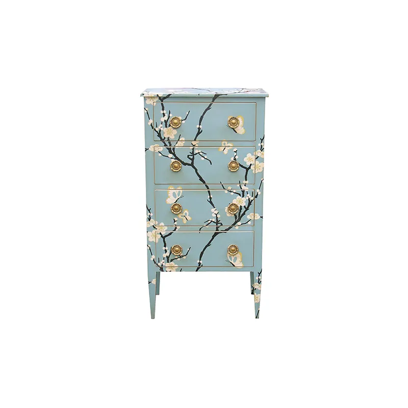 Hêtre laqué décor peint à la main fleurs de cerisier