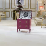Hêtre laqué bleu des Vosges et gainé de papier peint