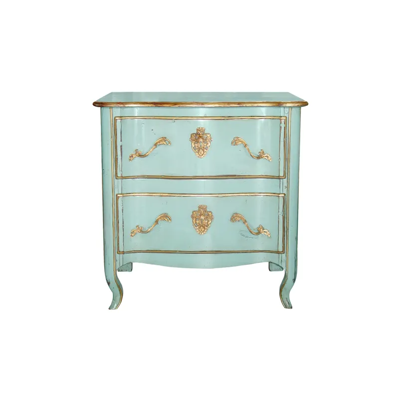 Accueil / Collection / Commodes / Commode Régence Tournus Réf. 560 Commode Régence Tournus Réf. 560Deux tiroirs galbés, dessus bois. Référence560 BFinitionHêtre laqué céladonDimensionsL. 78 x P. 56,5 x H. 78 cmOù trouver ce produit ? Plus d’inspiration Miroir Régence Réf. 572 Tête de lit Sévigné Réf. 144TER Fauteuil Régence médaillon Réf. 157F Commode Régence Tournus Réf. 560