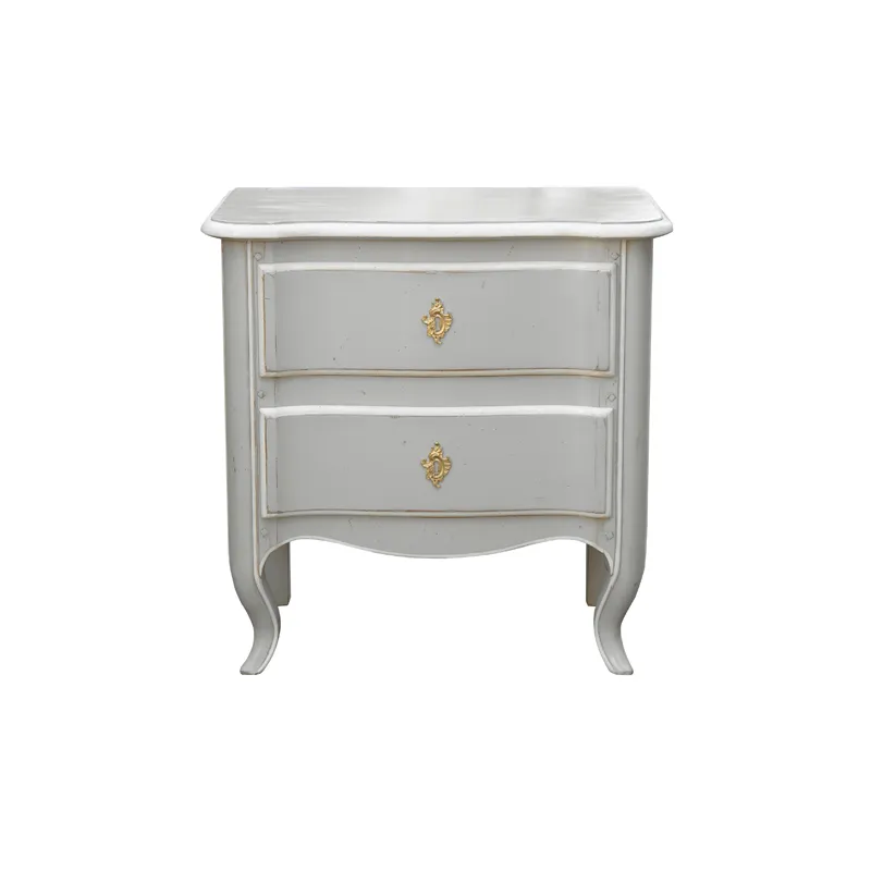 Commande spéciale. Dimensions spéciales. Deux tiroirs galbés, dessus bois.