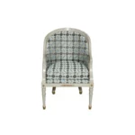 Dos ceinturé de forme ovale, pieds en bois tourné sur roulettes ornés de bronze, garnissage à coussin. Métrage pour un tissu uni en 140 cm de large : 5 m.