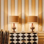 Galerie bronze et chapeaux en bronze. Métrage pour un tissu uni en 140 cm de large : 1 m. Tissu abat jour non fourni.