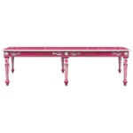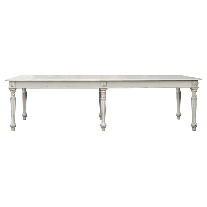 Six pieds ornementés et traverses avec guirlandes, mais sans motif floral. Dessus bois. Sans allonge.
