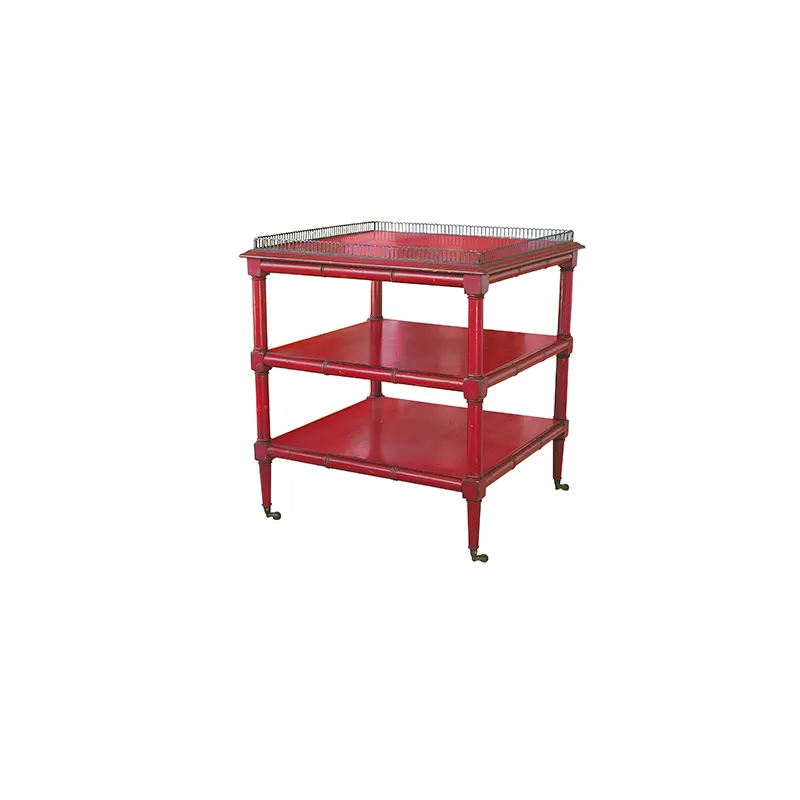 Trois plateaux fixes, galerie en laiton, sur roulettes.