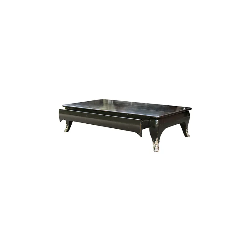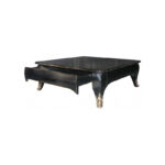 Commande spéciale. Dimensions spéciales. Dessus bois, un grand tiroir, quatre côtés galbés, sabots en bronze vieilli.