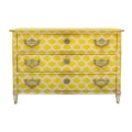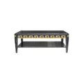 Galerie en laiton, ceinture ornée de quatre médaillons, pieds gainés.
