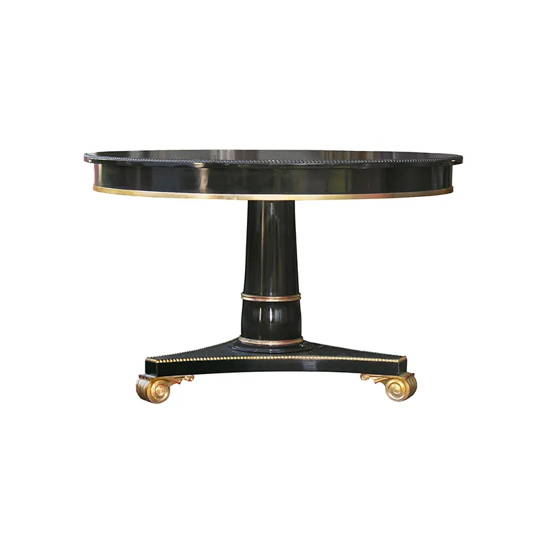 Plateau orné de perles en bronze reposant sur un pied colonne et socle tripode.