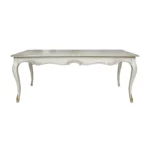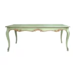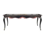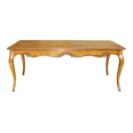 Pieds galbés, traverses sculptées, dessus avec motif « Croix de Saint-André », sabots en bronze. Deux allonges de 60 cm sur coulisseaux.