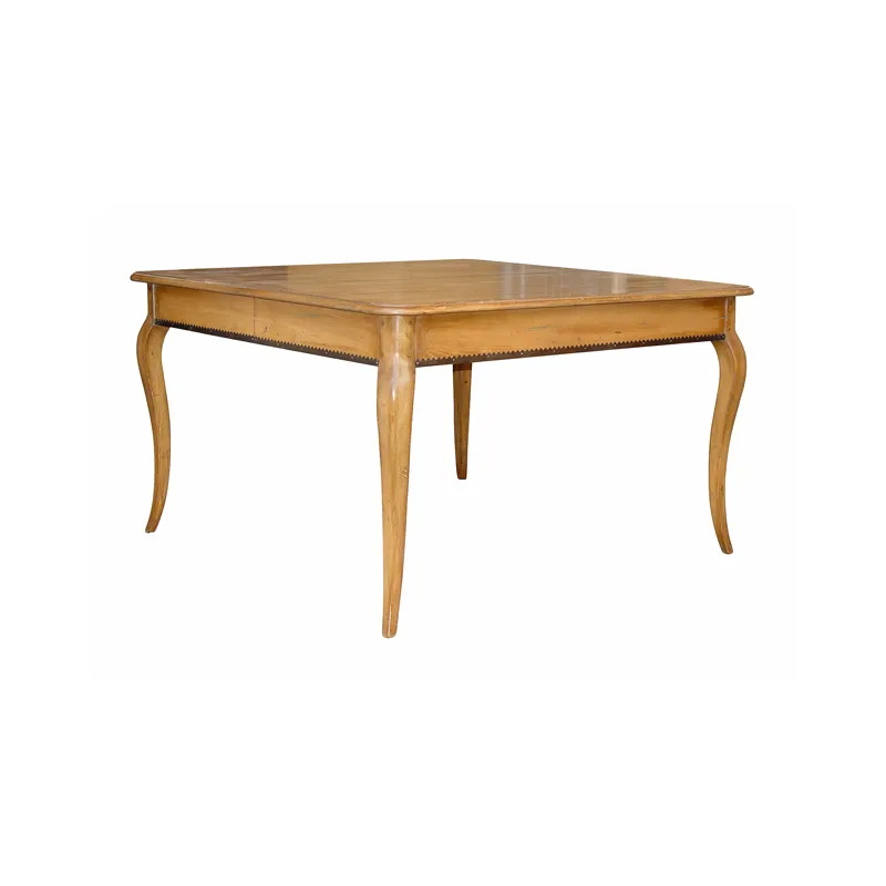 Ceinture décorée d’une galerie en fer, pieds galbés. Deux allonges de 50 cm avec rappel de ceinture.