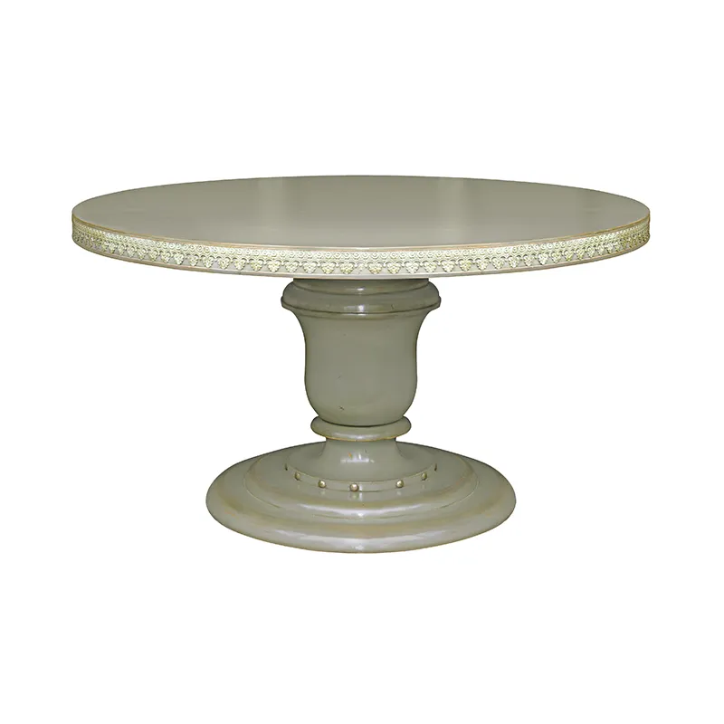 Important pied en bois tourné reposant sur un socle mouluré, plateau orné d’une galerie en laiton. Deux allonges de 50 cm.