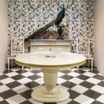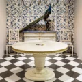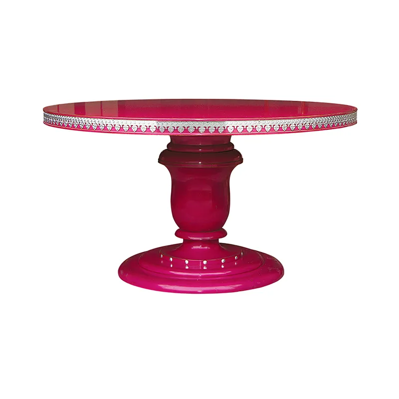Important pied en bois tourné reposant sur un socle mouluré, plateau orné d’une galerie en laiton. Deux allonges de 50 cm.